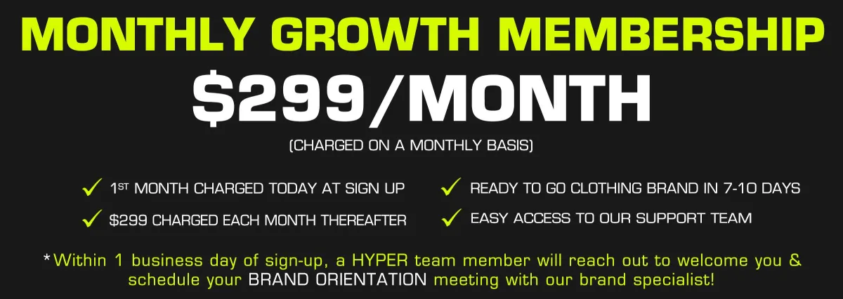 GO HYPER 4 DESIGNS & 10 TEES MONTHLY GROWTH MEMBERSHIP- $299/MONTH